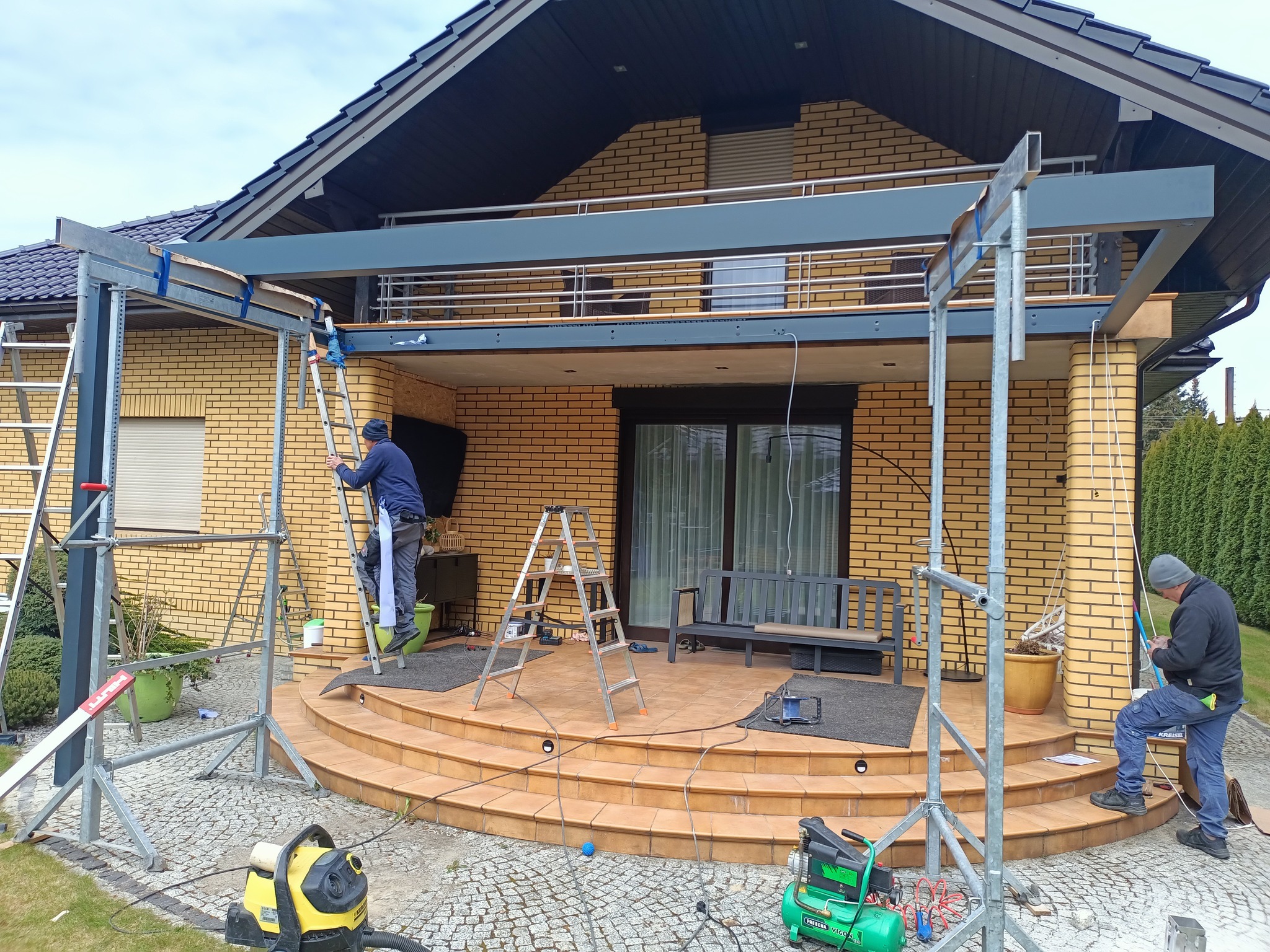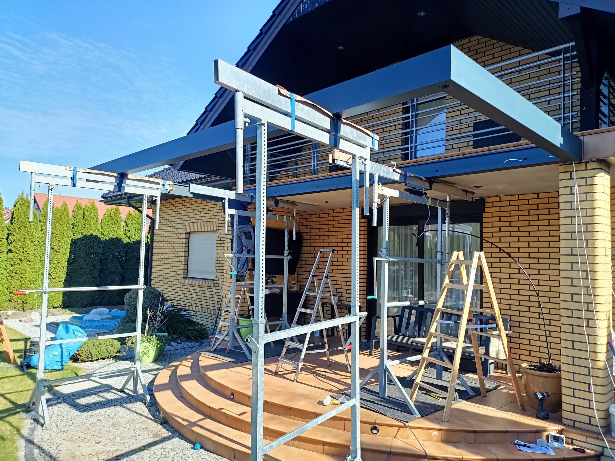 Zrobiliśmy kolejną pergolę. Zadaszenie przykryło schody i ten sposób powiększyło krytą przestrzeń. Można spokojnie posiedzieć przy deszczowej pogodzie. Facebook Twitter